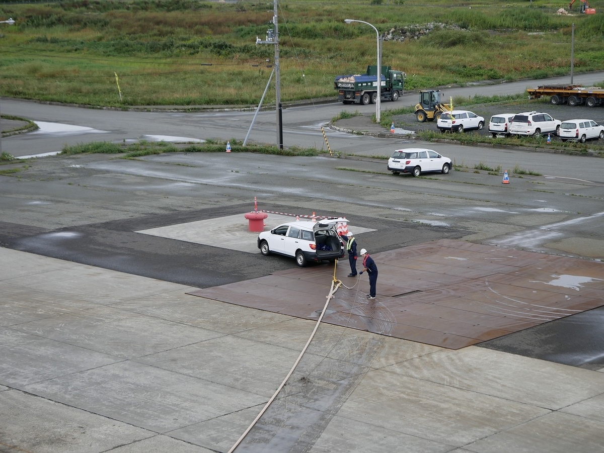 投げたロープは岩壁に届かないこともあります。また届いたロープは人力で引っ張るだけでなく、車で引っ張る場合もありました。