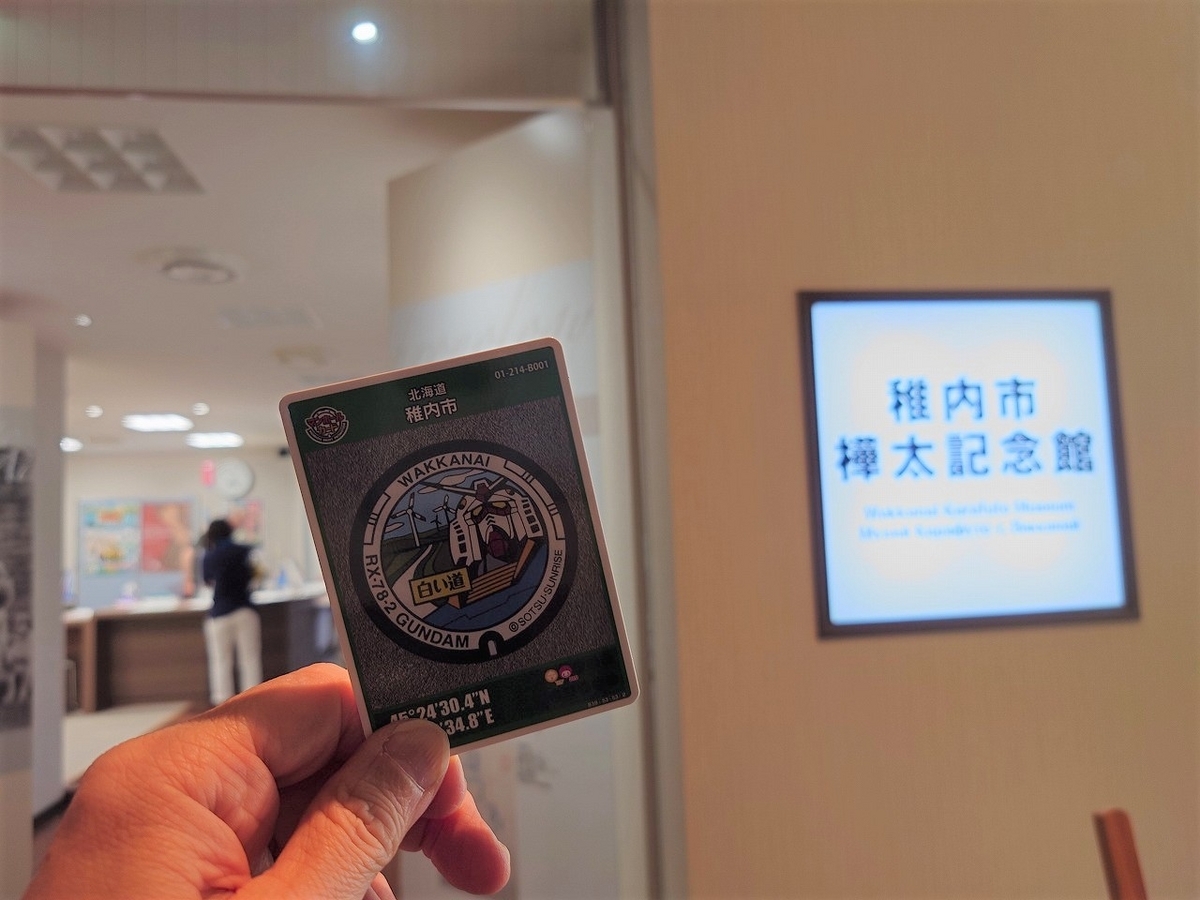 私のお目当ては、こちらの市場に併設されている樺太記念館でいただけるマンホールカードです。本来の日程なら利尻島上陸だったので、利尻町のマンホールカードをもらいに行くつもりでしたが、思いがけず稚内市のマンホールカードが手に入りました。
